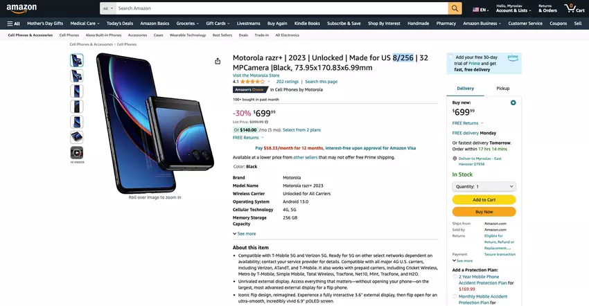 Beste prijs: Motorola Razr+ (2023) opvouwbare smartphone op Amazon met $300 korting