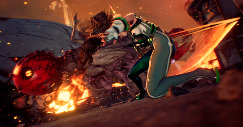 Oké, je kunt dus vechten, aanvallen afslaan en nieuwe combinaties leren, maar hoe zit het met schieten? De eerder genoemde Adam en Lily rennen nooit met ons mee. Waarom? Omdat alleen Eve de gymtraining niet heeft overgeslagen om een Nytiba-moordenaar te worden. Maar alleen hardlopen zou toch saai zijn? Shift Up dacht van wel en gaf ons een drone waarmee onze personages constant communiceren. Dit kleine mannetje kan niet alleen het terrein scannen en communiceren, maar ook met één knop veranderen in een langeafstandswapen. Er zijn ook genoeg munitieopties. Het is aan jou of je hem wilt gebruiken als shotgun, aanvalsgeweer of granaatwerper. Is het goed? Het is geweldig, kan ik je vertellen. Op sommige plekken kun je het spel niet uitspelen zonder te kunnen schieten.