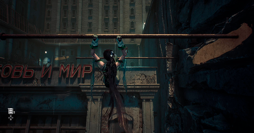 Toch was het geweldig om te vechten. Er zijn veel vijanden, ze zijn verschillend. En als je je te veel ontspant of het gevoel hebt dat je de helden van dit spel bent, tot ziens. Het is de moeite waard om de flexibiliteit van Eve op te merken. Nadat je minstens een paar combinaties hebt geleerd, veranderen de gevechten in een dodendans, maar het hangt van je rechte handen af: voor wie het de dood wordt en voor wie het triomf wordt. De heldin springt en slaat als een echte acrobaat. Misschien is Eva eerst afgestudeerd aan een circusschool en is ze daarna in het leger gegaan. Ik weet het niet, het spel vertelt ons dat niet.