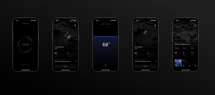 Tesla liet een reeks schermen zien van de toekomstige functie. De eerste toont een grote "Bel"-knop en geeft de wachttijd bij benadering aan. Het volgende scherm toont een 3D-kaart met een virtueel model van de auto die onderweg is naar de klant.