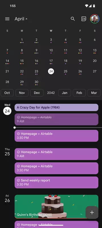 Innovatie-watchers zullen deze verandering herkennen, die bestaat uit chips tussen de maandkalender en de agenda. Met deze chips kun je snel vooruit of achteruit bladeren door maanden of zelfs decennia, waardoor je direct toegang hebt tot gebeurtenissen in de verre toekomst.