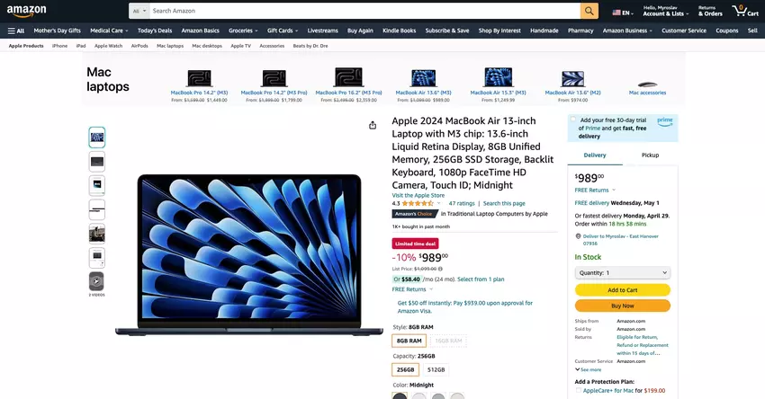 - MacBook Air 13, 8/512 GB - $1,329.95.