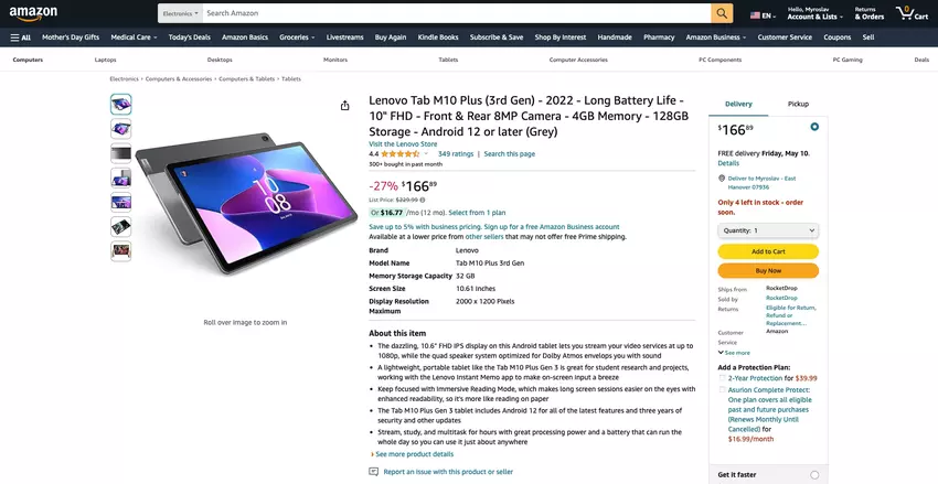 Lenovo Tab M10 Plus (3e generatie) met 10,6-inch scherm, MediaTek Helio G80-chip en 128 GB opslag is verkrijgbaar op Amazon met $ 63 korting