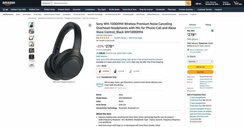Aanbieding van de dag: Sony WH-1000XM4 op Amazon voor minder dan $280