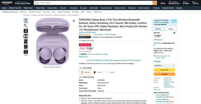 Beperkte aanbieding: Samsung Galaxy Buds 2 Pro met ANC en tot 29 uur autonomie op Amazon met $70 korting