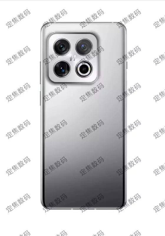 De rechthoekige module bevat drie camera's en een ronde LED-flitser. In het midden staat het Hasselblad-logo. Aan de rechterkant van de telefoon zitten de aan/uit-knop en de volumeknop, terwijl aan de linkerkant waarschijnlijk de kenmerkende notificatiemodusschakelaar van OnePlus zit.