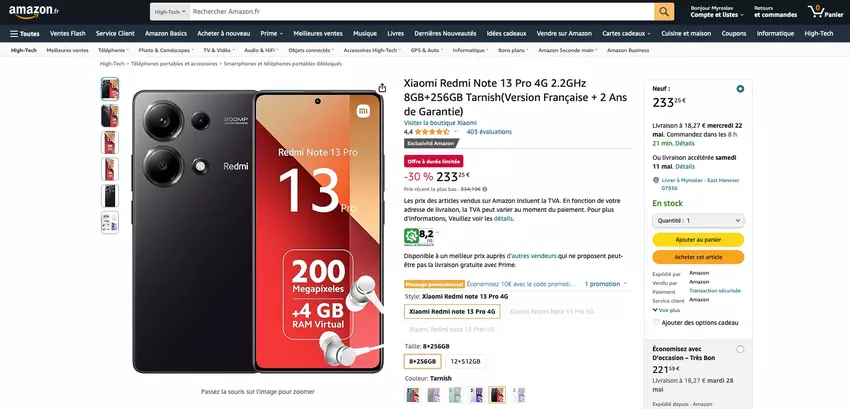 Redmi Note 13 Pro 4G met 200 MP camera en MediaTek Helio G99 Ultra chip verkrijgbaar op Amazon met €101 korting