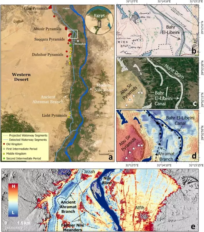 De beroemdste Egyptische piramides bevinden zich in dit gebied, zoals het piramidecomplex van Gizeh, de trappiramide van Djoser, de Gebroken Piramide, enzovoort. Ze werden gebouwd tussen 2700 en 1700 voor Christus. Aan het einde van de ijstijd (de periode van de grootste ijstijd op aarde) was er veel meer vocht in Afrika en stond de Nijl aanzienlijk hoger. Volgens de wetenschappers was er toen een ongeveer 64 kilometer lange arm van de Nijl. Om hun hypothese te bevestigen, bestudeerden de wetenschappers satellietbeelden, sedimentaire gesteentemonsters en voerden ze geofysisch onderzoek uit op het Westelijke Woestijnplateau. Ze stellen voor om de verloren rivierbedding "Ahramat" te noemen, wat "piramides" betekent in het Arabisch.