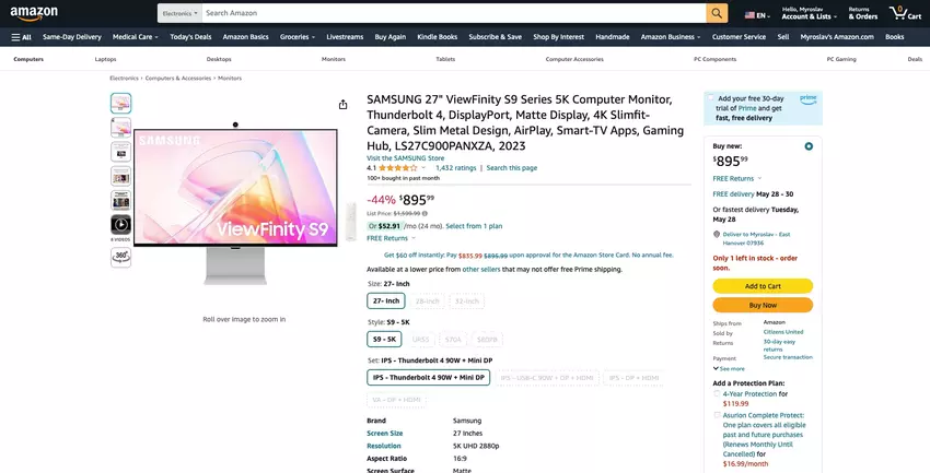 We hebben het over het ViewFinity S9-model met een mat IPS-scherm. Het apparaat is goedkoper dan $1,599.99- $1,599.99.
