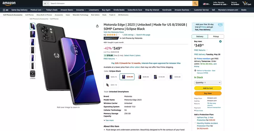 De korting is $250: Motorola Edge (2023) met 144Hz-scherm en Dimensity 7030-chip verkrijgbaar bij Amazon tegen actieprijs