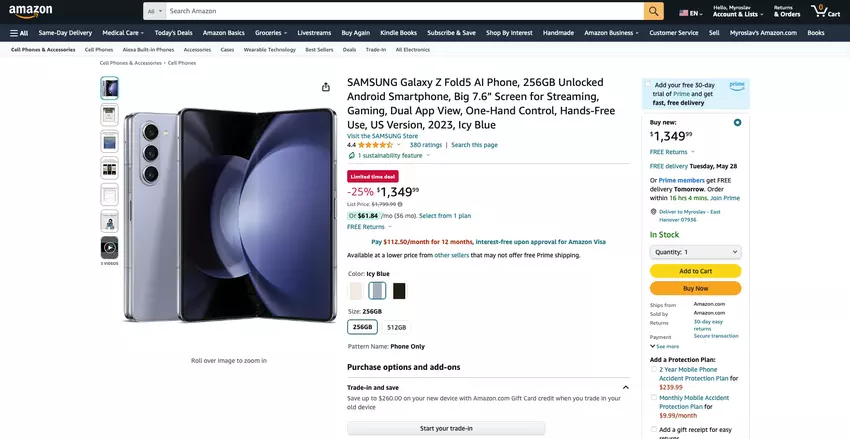 Samsung Galaxy Fold 5 opvouwbare smartphone kan worden gekocht op Amazon met een korting van $450
