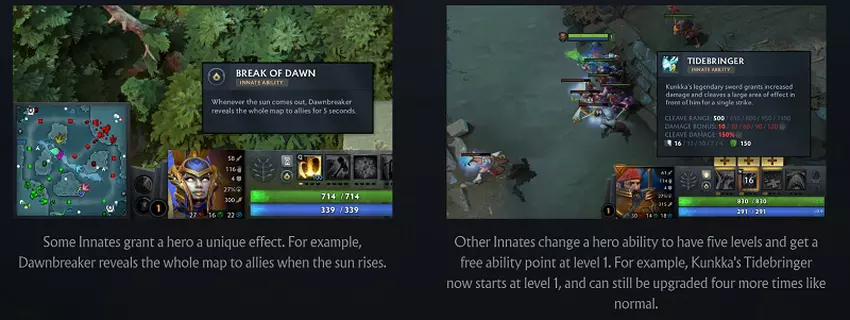 - Sommige geven een permanent uniek effect - Faceless Void vertraagt bijvoorbeeld vijandelijke aanvalsprojectielen en Dawnbreaker onthult de hele kaart als de zon opkomt;