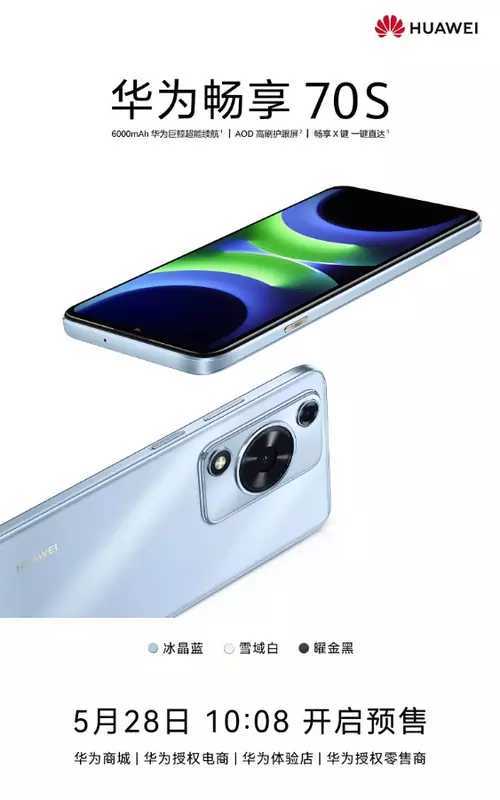 Huawei onthult de Enjoy 70S budgetsmartphone met een accu van 6.000 mAh op 28 mei