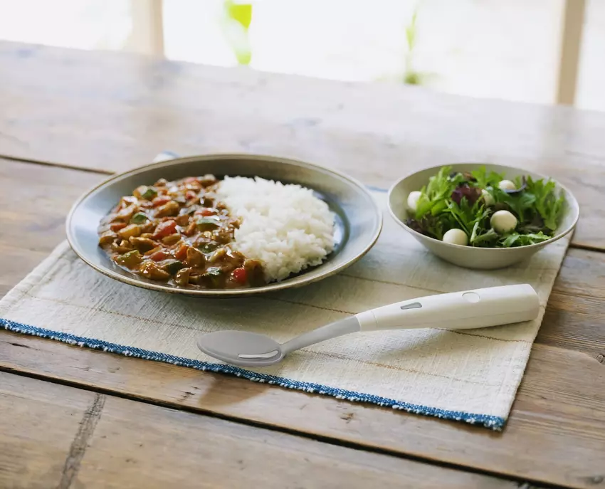 We hebben het over een elektrische lepel die het gerecht kan "zouten". De lepel heeft speciale elektroden die een stroom naar de tong sturen, waardoor een lichte smaak van unami ontstaat.