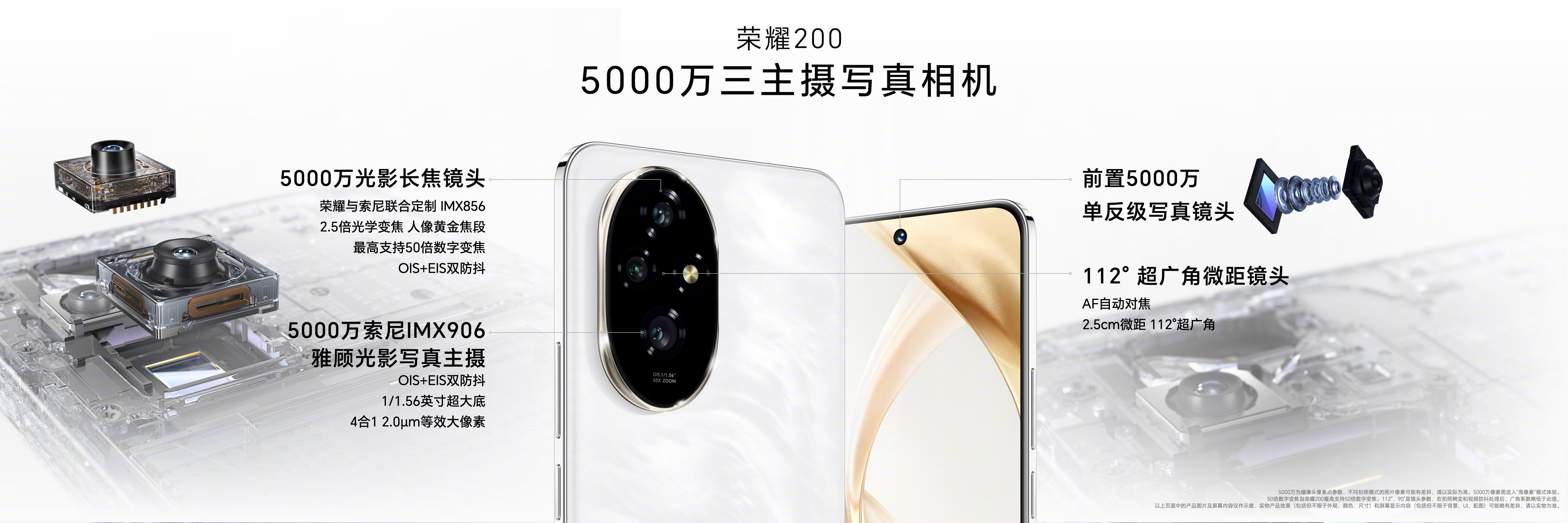 De Honor 200 wordt aangedreven door een Snapdragon 7 Gen 3-processor in combinatie met 12/16 GB LPDDR5 RAM en tot 512 GB opslagruimte. De fabrikant heeft de smartphone ook uitgerust met een 50 MP (Sony IMX906 met OIS) + 12 MP (112° groothoeklens) + 50 MP (Sony IMX856 telelens) hoofdcamera en een 50 MP (Sony IMX906) frontcamera.