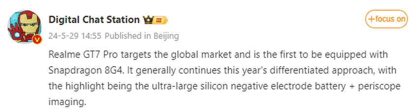 Volgens klokkenluider Digital Chat Station zal de Realme GT 7 Pro uitgerust zijn met de Snapdragon 8 Gen 4-chipset van het aankomende vlaggenschip, waarmee het de eerste smartphone wordt met deze processor die wereldwijd beschikbaar is.