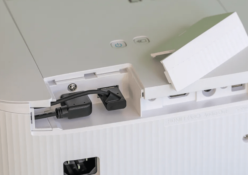 Nadelen: "De resolutie is merkbaar zachter dan echte 4K-projectoren die ik heb geprobeerd. Je kunt nog steeds een groot, meeslepend beeld krijgen, maar de pixeldichtheid neemt een duik boven de 100" afmetingen."