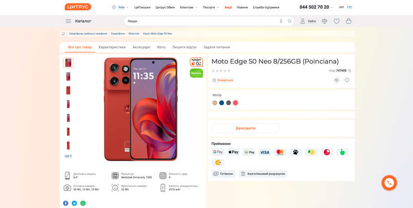 We hebben al vaker geschreven dat Motorola zich voorbereidt op de release van de Moto Edge 50 Neo smartphone. Nu is de noviteit verschenen op de website van de Oekraïense retailer Citrus.