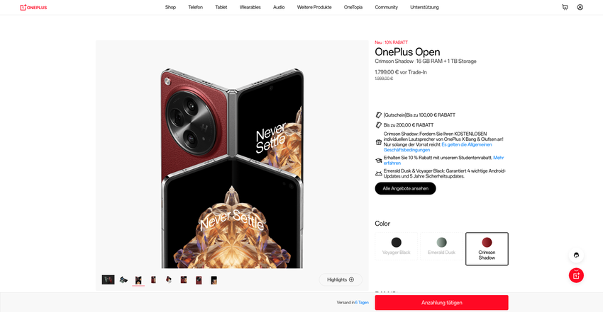 OnePlus onthulde onlangs een speciale versie van de opvouwbare Open smartphone in Crimson Shadow in de VS. Nu is de nieuwigheid aangekomen in Europa.