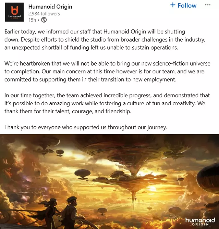Casey Hudson heeft de sluiting van Humanoid Origin en de annulering van alle projecten aangekondigd.