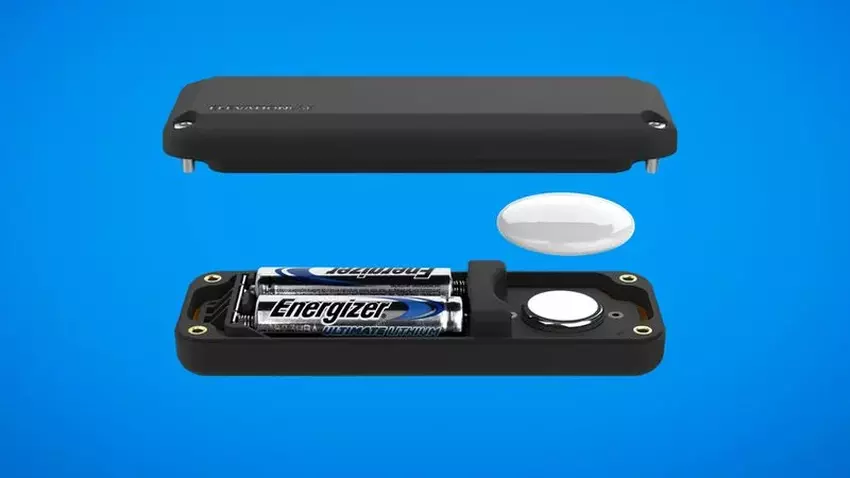 Het apparaat kost $20 en is een speciale behuizing voor AirTag die twee AA-batterijen bevat met 14 keer de capaciteit van de originele CR2032-batterij.