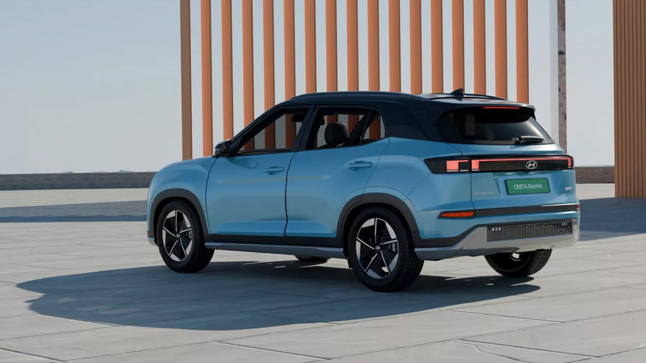 De voorkant van de Creta Electric krijgt een gesloten plaat met een gepixeld design, terwijl de luchtinlaat van de onderbumper is voorzien van actieve aerodynamische flappen. De achterbumper heeft ook een gepixeleerd ontwerp boven de middenplaat. Van de zijkant verschilt de elektrische crossover echter niet veel van de versie met verbrandingsmotor. Wel is hier een nieuwe set 17-inch wielen gemonteerd.