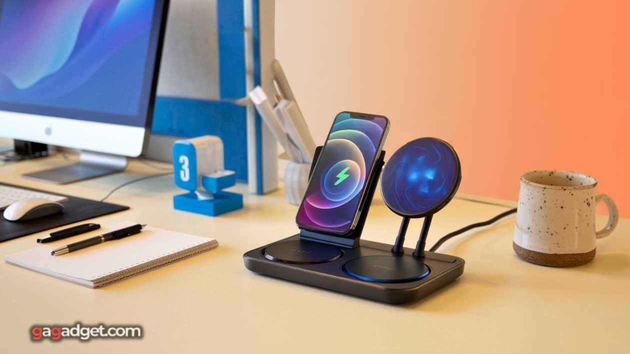 Wat echt indruk op me maakt bij deze lader is het doordachte ontwerp. De verstelbare kijkhoeken maken hem perfect voor FaceTime-gesprekken of het bekijken van video's tijdens het opladen, en de magnetische uitlijning is sterk genoeg om je telefoon stevig op zijn plaats te houden. Het speciale 5 W oplaadstation voor AirPods is perfect geplaatst en werkt vlekkeloos, hoewel ik zou willen dat het snellere oplaadsnelheden voor de oordopjes ondersteunt.
