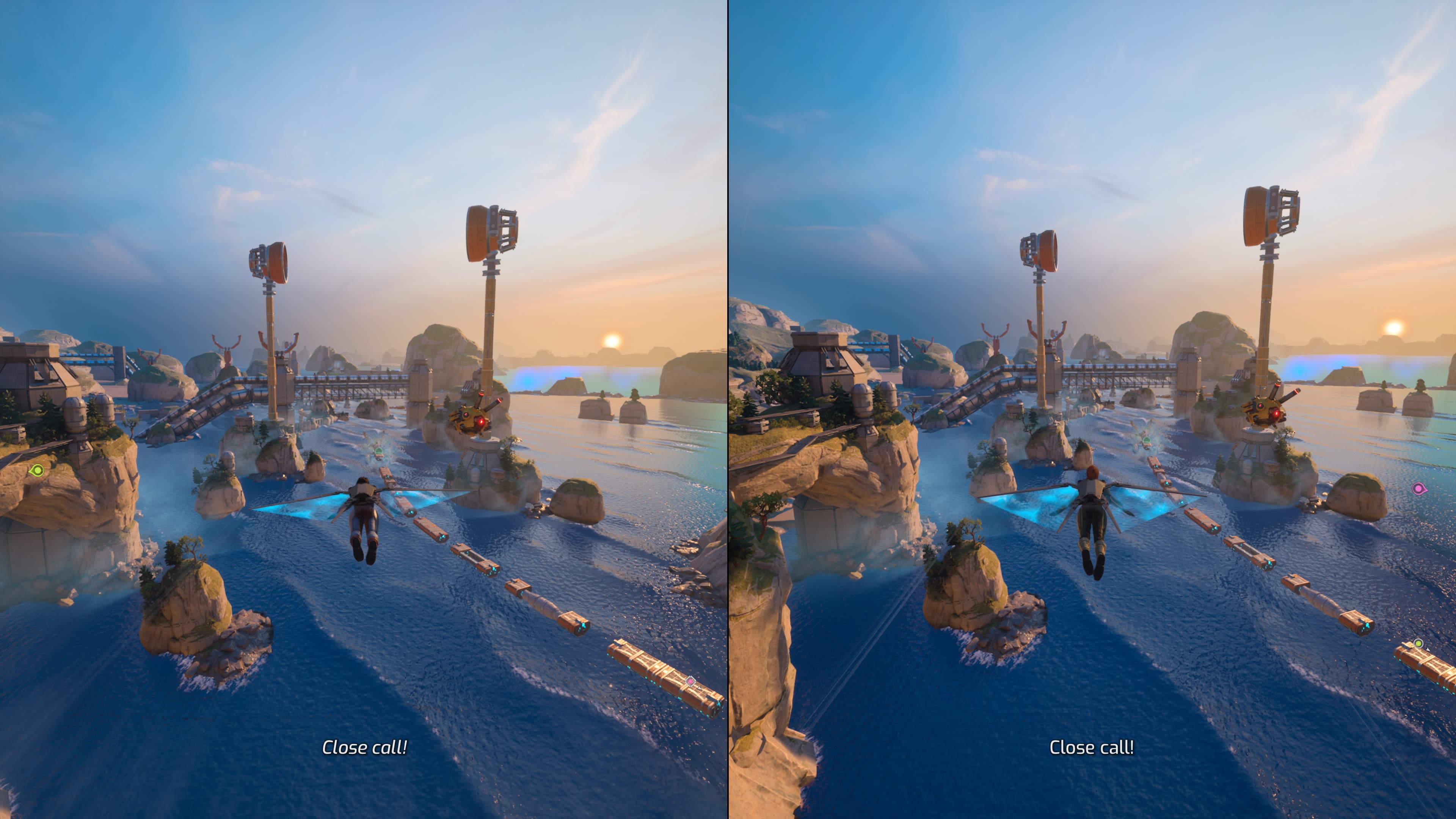 Er zijn helemaal geen problemen met de geluiden. Naast het feit dat de personages geweldig klinken en goed geacteerd zijn, en de omgeving ook niet aarzelt om zichzelf te onthullen via de audio, heeft Split Fictions een coole soundtrack. Deze klinkt op de juiste momenten en zet de toon voor de gebeurtenissen. Er is dramatische muziek die belangrijke plotpunten benadrukt, er is ook ruimte voor meer epische composities die te horen zijn tijdens intense eindbaasgevechten en natuurlijk speelt er vaak een kalm melodietje op de achtergrond om je reis te begeleiden.