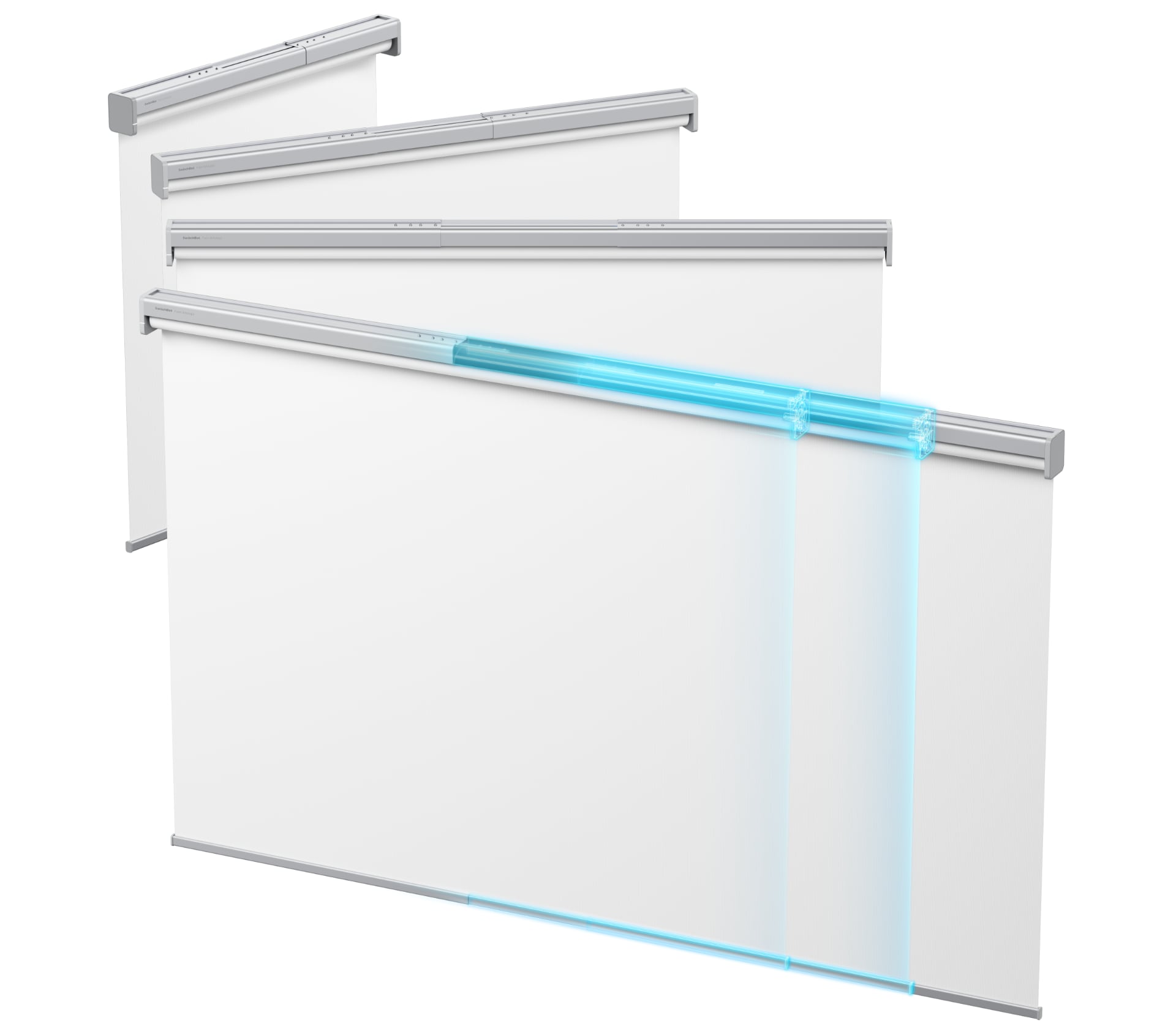De stof kan onafhankelijk worden verwisseld, terwijl het gemotoriseerde mechanisme ongewijzigd blijft. Dit bespaart geld en stelt je in staat om snel de look van het interieur te veranderen.