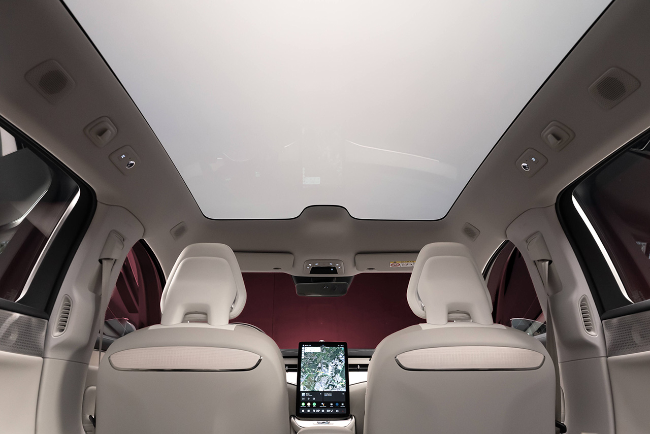 Met een lange wielbasis van 3,1 meter biedt de ES90 veel beenruimte voor passagiers op de tweede rij. Zes verlichtingsthema's voor het interieur en diverse bekledingsopties maken het mogelijk om de ES90 te personaliseren. De ES90 wordt ook geleverd met een panoramisch dak dat 99,9 procent UV-bescherming biedt. En als je kiest voor de elektrochromische versie, kun je de transparantie van het glas aanpassen met één druk op de knop.