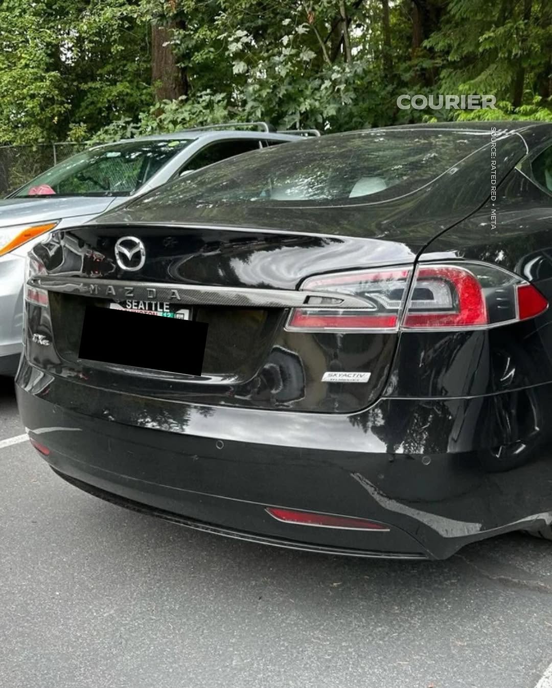 Tesla-rijders vermommen hun auto's als auto's van andere fabrikanten. Bron: Couriernewsroom