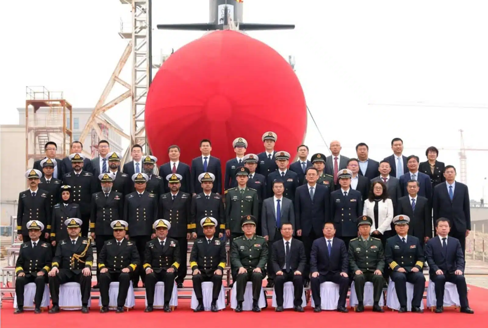 Pakistaans en Chinees militair personeel en een Hangor-klasse onderzeeër. Illustratie: Pakistaanse marine
