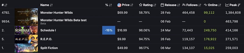 Het spel staat op de lijst van meest gewilde nieuwe releases van 2025, op de tweede plaats na Monster Hunter Wilds.