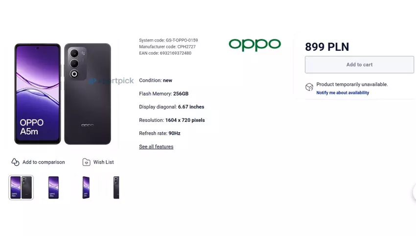 Oppo bereidt een nieuwe smartphone voor, de A5m, en zijn specificaties en prijs werden per ongeluk onthuld vóór de officiële aankondiging. Volgens voorlopige informatie is het apparaat al te koop in Polen, en het is bekend dat het ongeveer PLN 899 zal kosten, wat ongeveer gelijk is aan $239 of €211.
