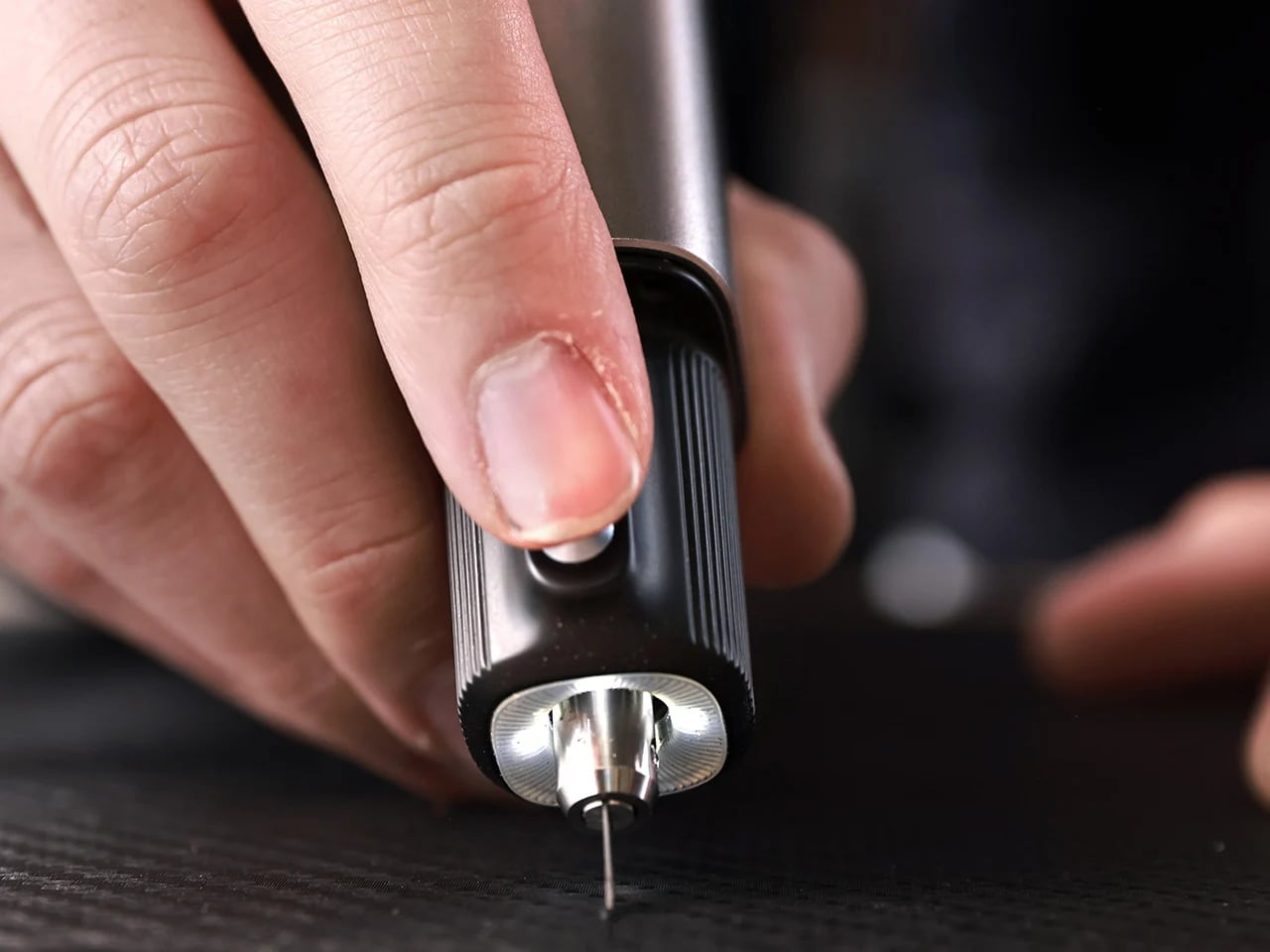 De NeoBlade lijkt op een dikke markeerstift. Slechts 180 gram zwaar, je hand vermoeit niet zelfs na een lange snijsessie. Met een druk op de knop wordt een van de twee modi geactiveerd: Precisie Modus voor fijne afstemtaken (afsnijden van een klein defect op een miniatuur) of Continue Modus voor moeiteloos snijden van schuim, acryl of PVC.