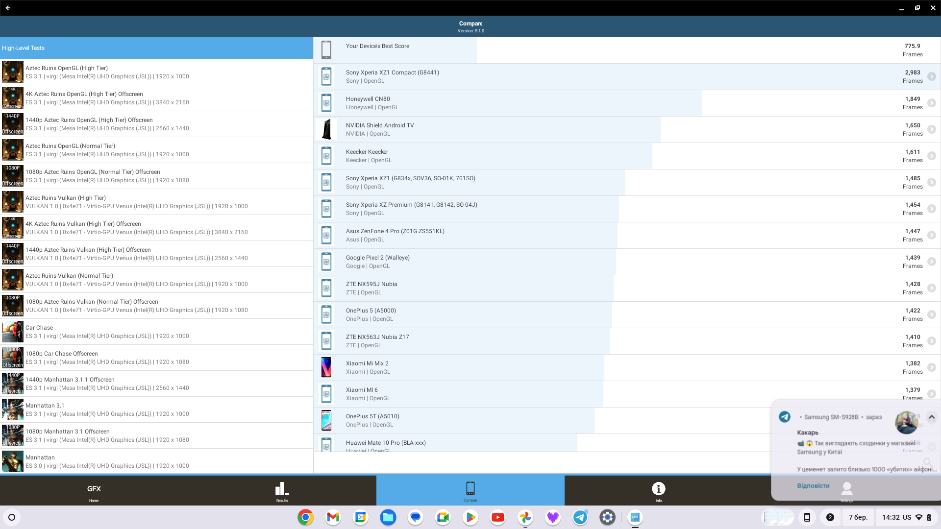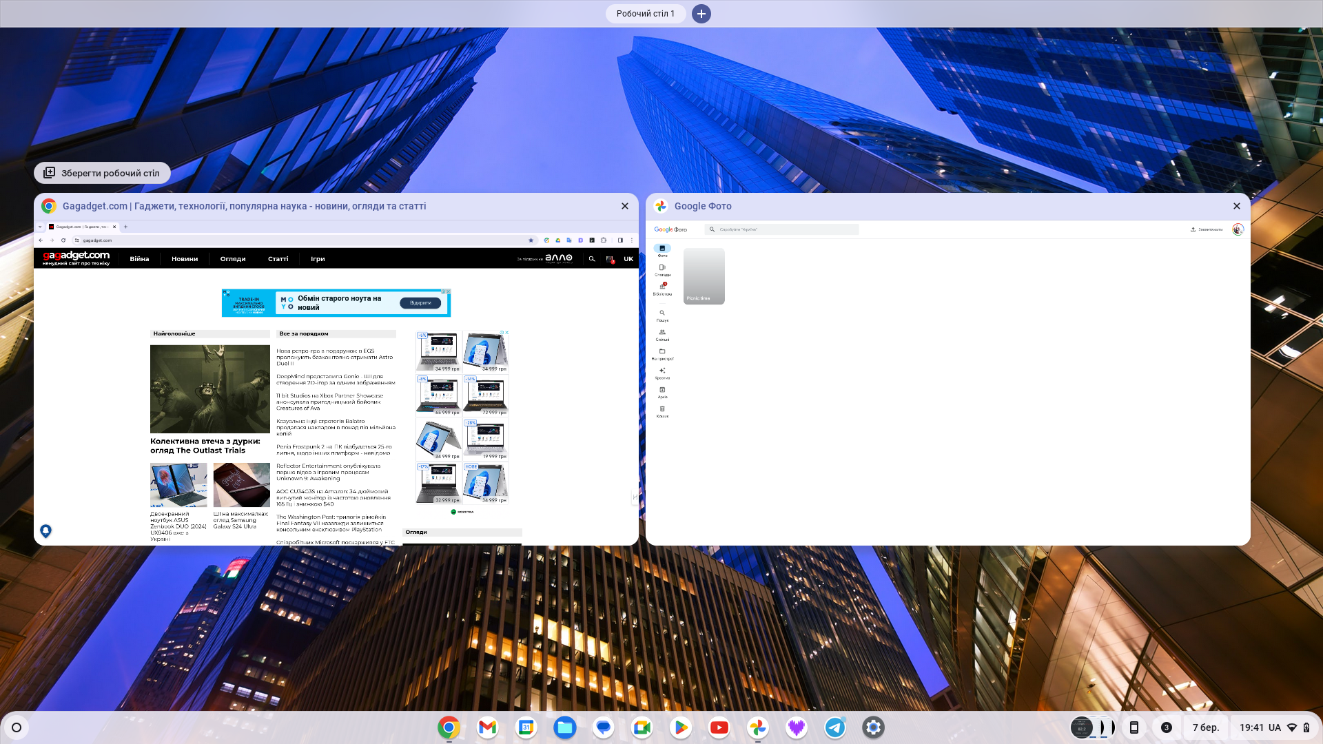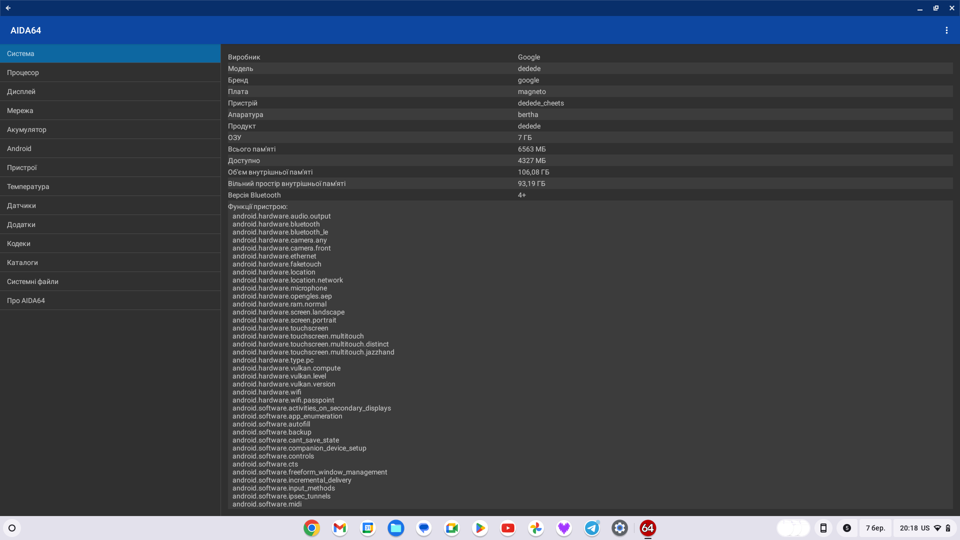 Over het algemeen lijken de logica en het uiterlijk van de interface op de gebruikelijke Windows desktop. We hebben een snelle launcher die desgewenst verborgen kan worden. Er is een menu met alle geïnstalleerde applicaties, een paneel voor snelle instellingen (helderheid, volume, draadloze interfaces, enz.), snelle toegang tot meldingen en de mogelijkheid om je Android-smartphone te koppelen aan een Chromebook en toegang te krijgen tot foto's, gesprekslogs en meer. Chrome OS ondersteunt het maken van verschillende desktops en het gebruik door meerdere gebruikers. De overgrote meerderheid van Android-apps werkt correct. Om apps te installeren die niet uit de Play Store komen, moet je echter overschakelen naar de ontwikkelaarsmodus.