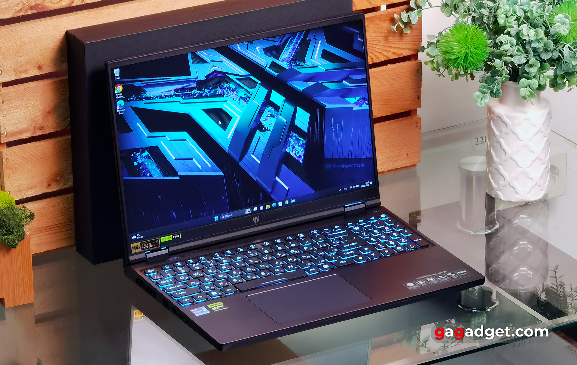 In de Acer Predator Helios 16 zitten 13e-generatie Intel-processors uit de Raptor Lake HX-serie (tot Core i9) en NVIDIA GeForce RTX 4000-serie (tot 4080) grafische kaarten. De laptop die we bekeken bij gg was geen top-of-the-line configuratie. De laptop was uitgerust met een Intel Core i7-13700HX-processor. Deze heeft 8 productieve kernen met een frequentie van 2,1-5,0 GHz en 8 energiezuinige kernen op 1,5-3,7 GHz. Er is ondersteuning voor multi-threaded computing: tot 24 threads, level 3 cache van 30 MB. De processor is gemaakt met de Intel 7 process technologie, heeft een TDP van 55 W.