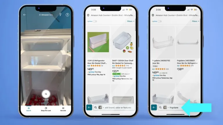 Met multimodaal zoeken kun je een foto van een product maken en tekst toevoegen aan de zoekopdracht om de resultaten te verfijnen. Als een gebruiker bijvoorbeeld op zoek is naar een onderdeel van een koelkast, kan hij er een foto van nemen en het model specificeren.