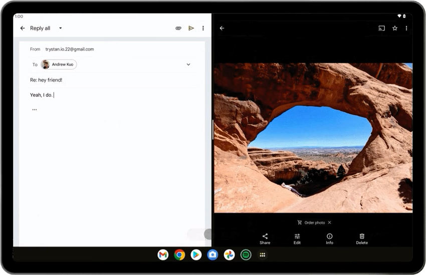 Taakbalk op een tablet met Android 13 en split-screen modus