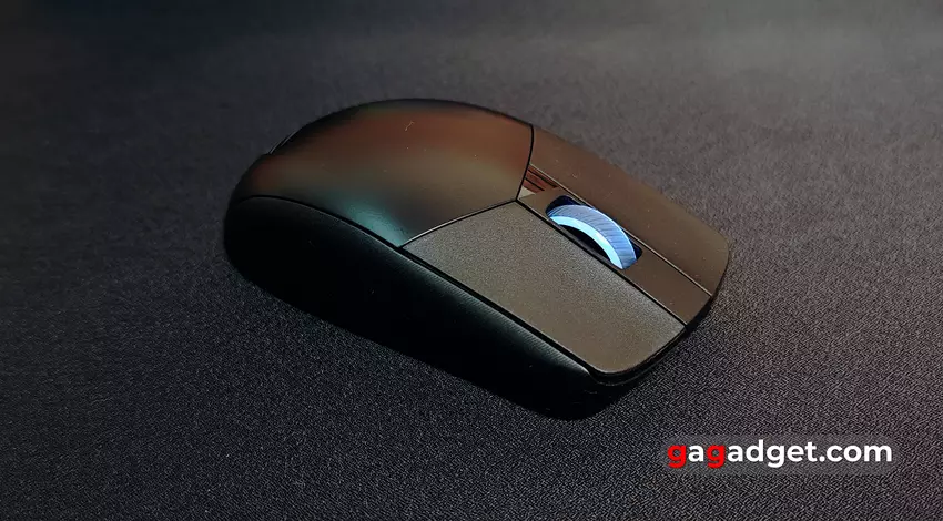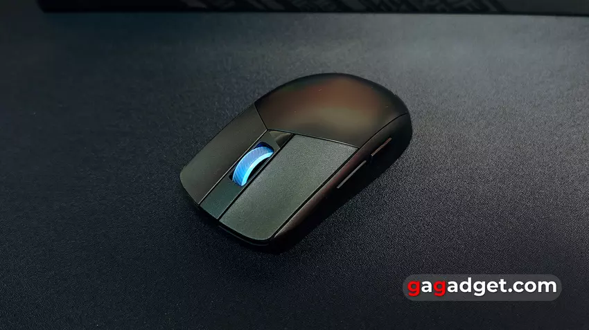 Het scrollwiel is het enige verlichte onderdeel van de muis. Het is doorzichtig, heeft een rubberen coating en diagonale inkepingen voor betere grip.