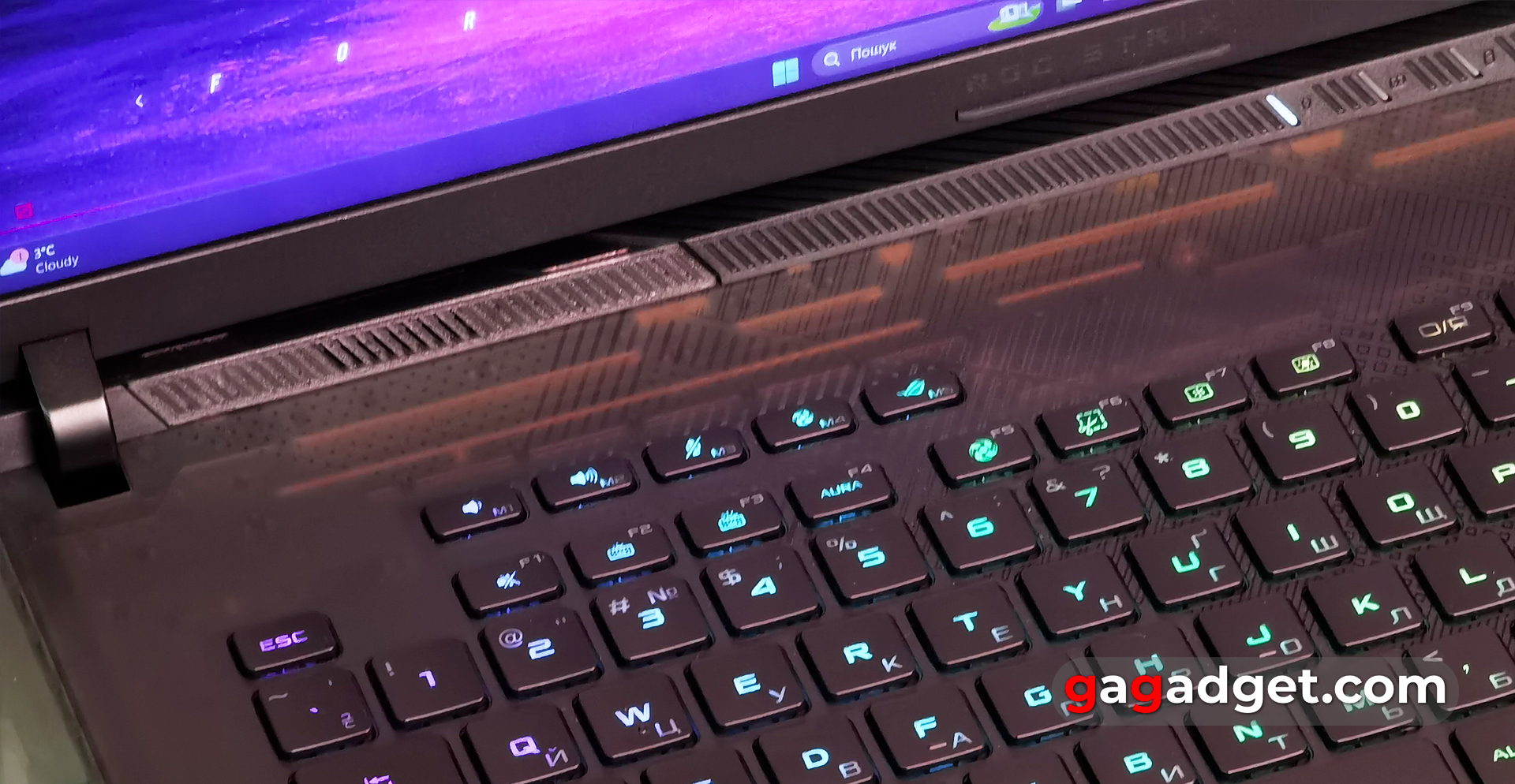 De voorkant van de laptop heeft nog een RGB achtergrondverlichting gebied.