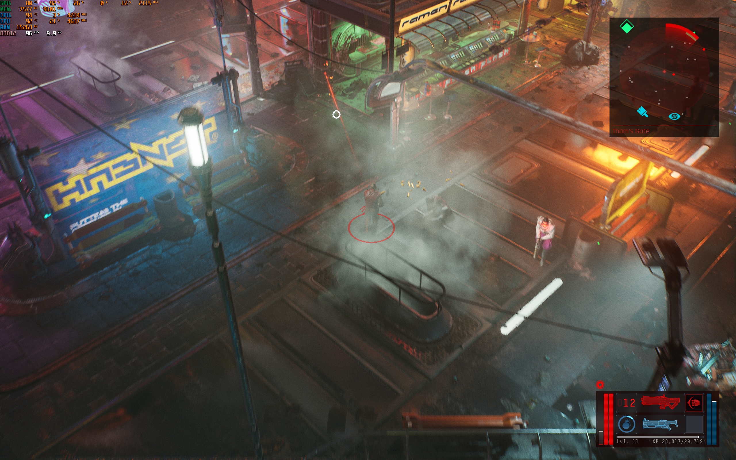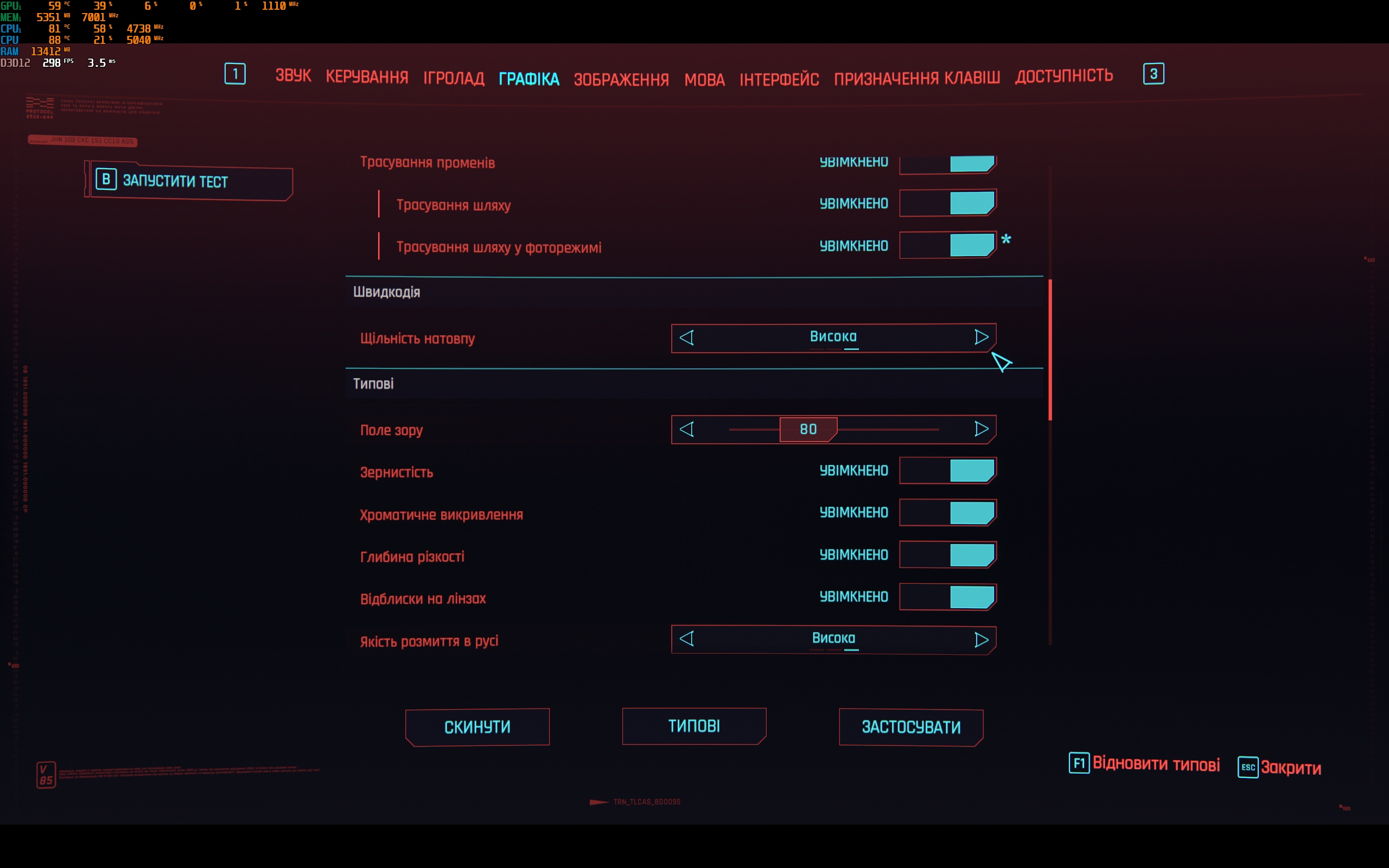 - Cyberpunk 2077. Maximale instellingen, inclusief path tracing. DLSS in automatische modus. 80-100 FPS.