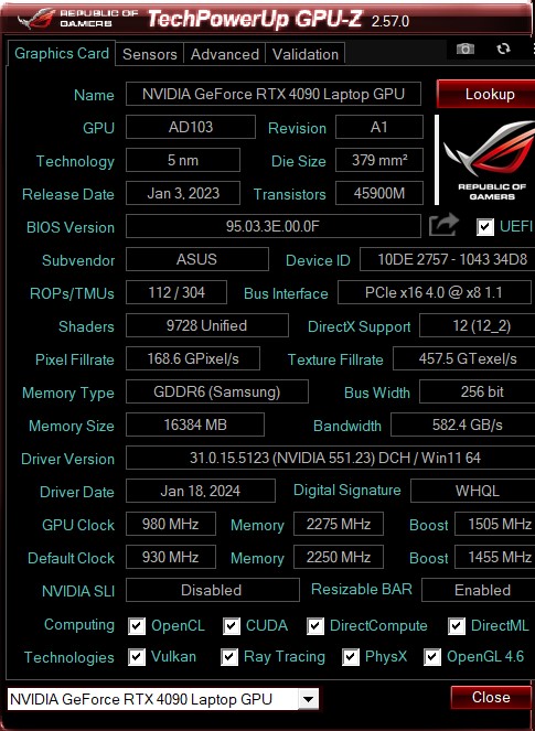 | Grafische | nVidia GeForce RTX 4090 Laptop, 16 GB GDDR6, Intel UHD Graphics (32EU) |