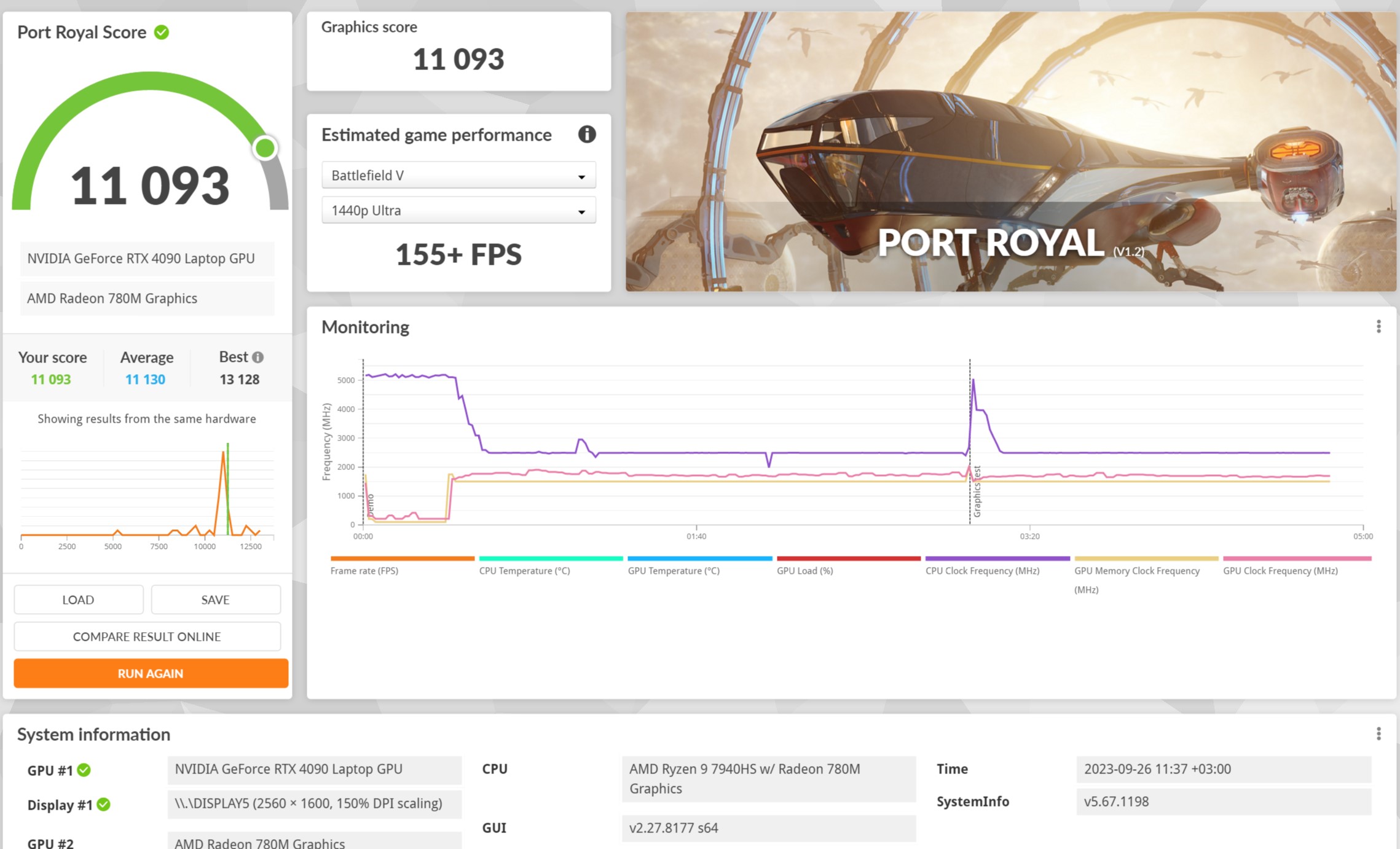 | Graphics. | nVidia GeForce RTX 4090 Mobile, 16 GB GDDR6, geïntegreerde AMD Radeon 780M |