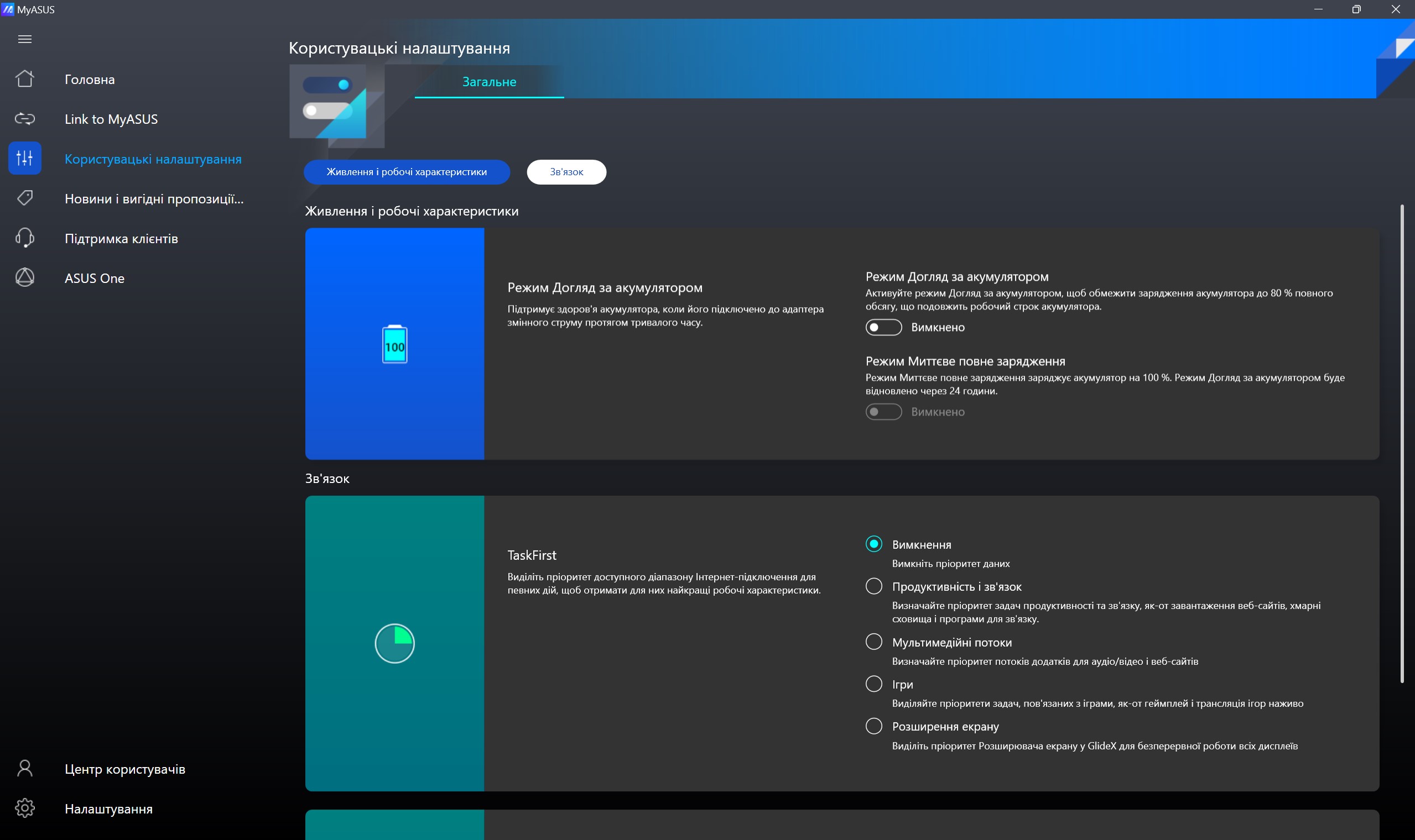 Er is ook de MyASUS app, die voor alle laptops van het bedrijf geldt, met basisinstellingen: