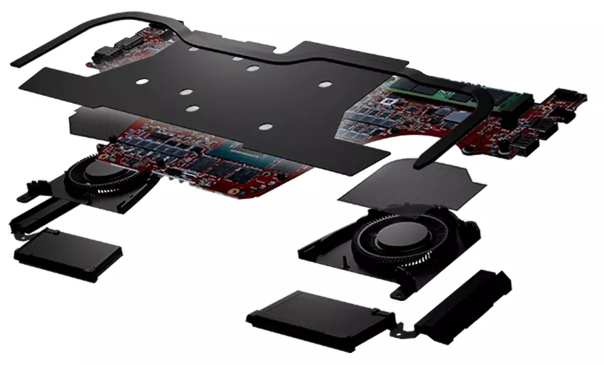 Het koelsysteem bevat twee Arc Flow koelventilatoren met elk 84 bladen, een verdampingskamer die 48,2% van het moederbord bedekt, en vier grote heatsinks bestaande uit koperen vinnen met een dikte van slechts 0,1 mm. Thermal Grizzly vloeibaar metaal wordt gebruikt als thermische interface. Er is ook een stofbeschermingssysteem.