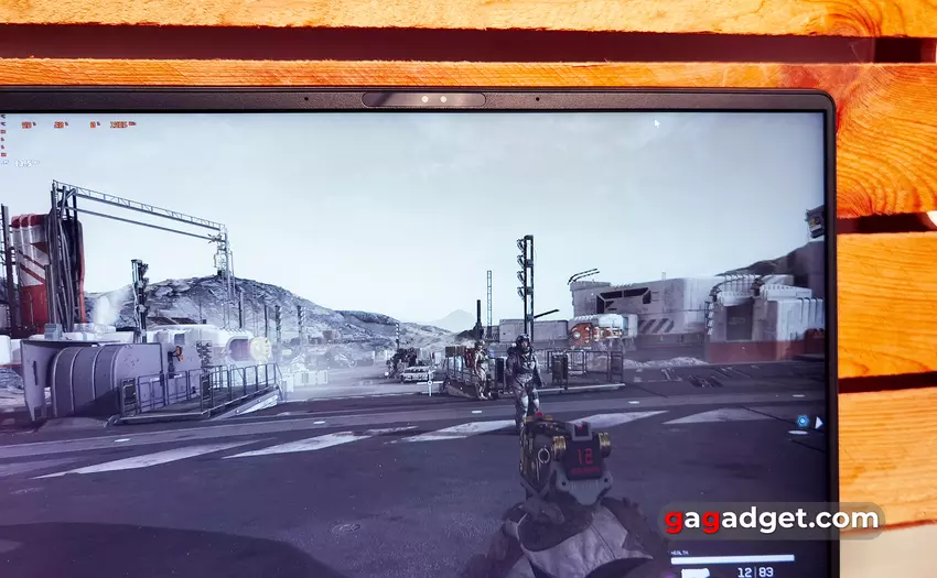 Het frame rond het scherm is dun en gemaakt van mat zwart plastic. Boven het scherm zit een FullHD webcam, LED-indicator, twee microfoons en een infrarood camera voor identificatie van de eigenaar.