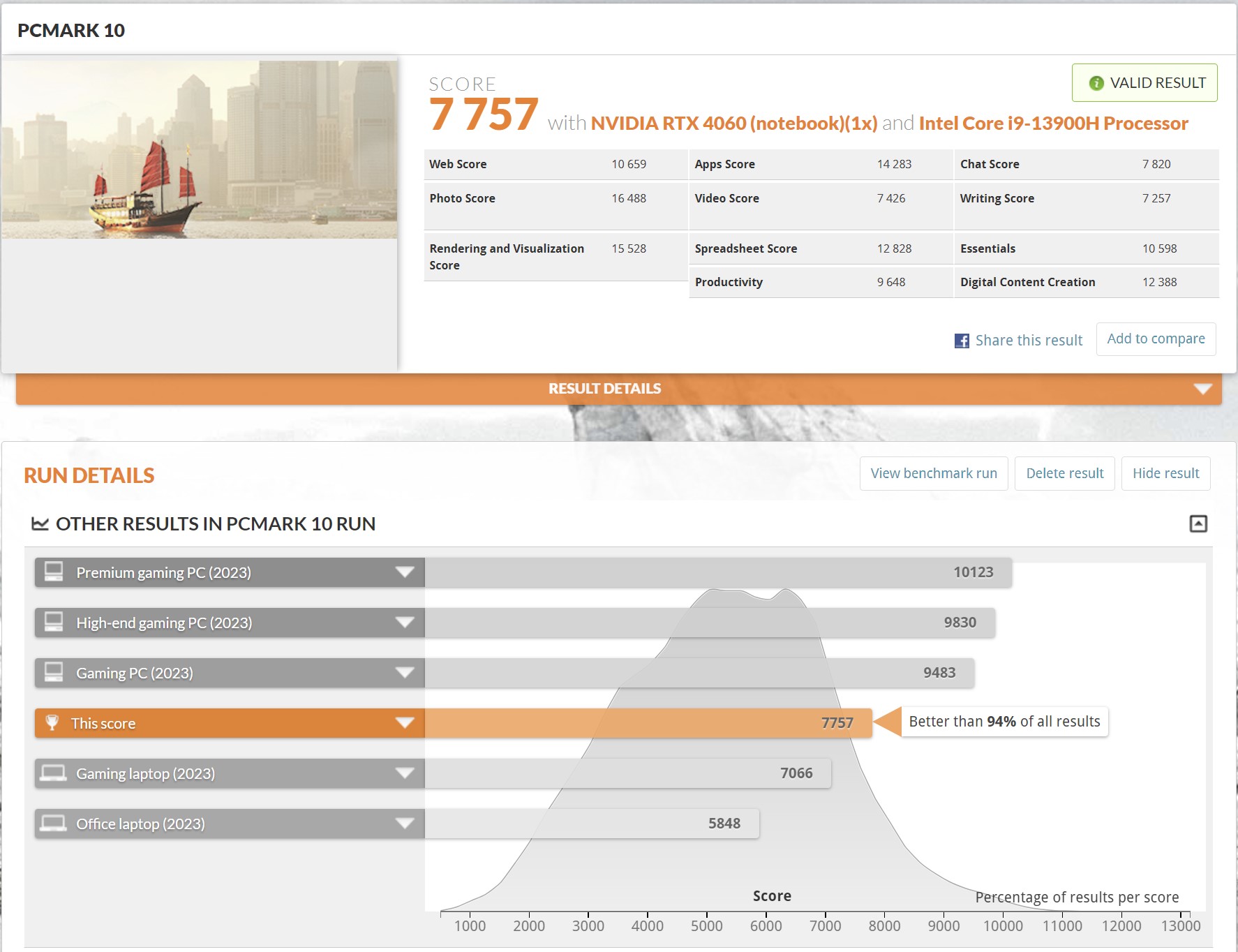 De laptop laat indrukwekkende prestaties zien voor deze vormfactor. Dit geldt voor zowel de processor als de grafische tests. Ja, de laptop doet iets onder voor grote gaming modellen, waar je met een grotere behuizing een krachtiger koelsysteem kunt installeren en dus een hogere TDP van de processor en videokaart hebt. Maar in zijn gewichtsklasse blijkt de laptop zeer krachtig te zijn. Hij is zeer geschikt voor zowel videobewerking als 3D modelleren: