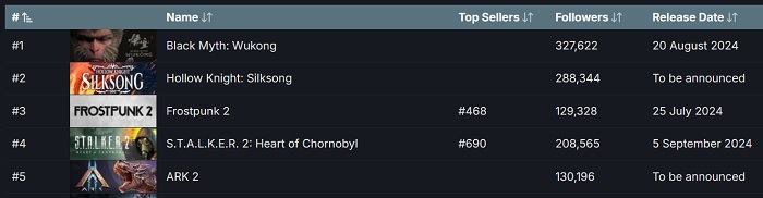 De Chinese actiegame Black Myth: Wukong staat bovenaan de lijst van meest geanticipeerde games op Steam.