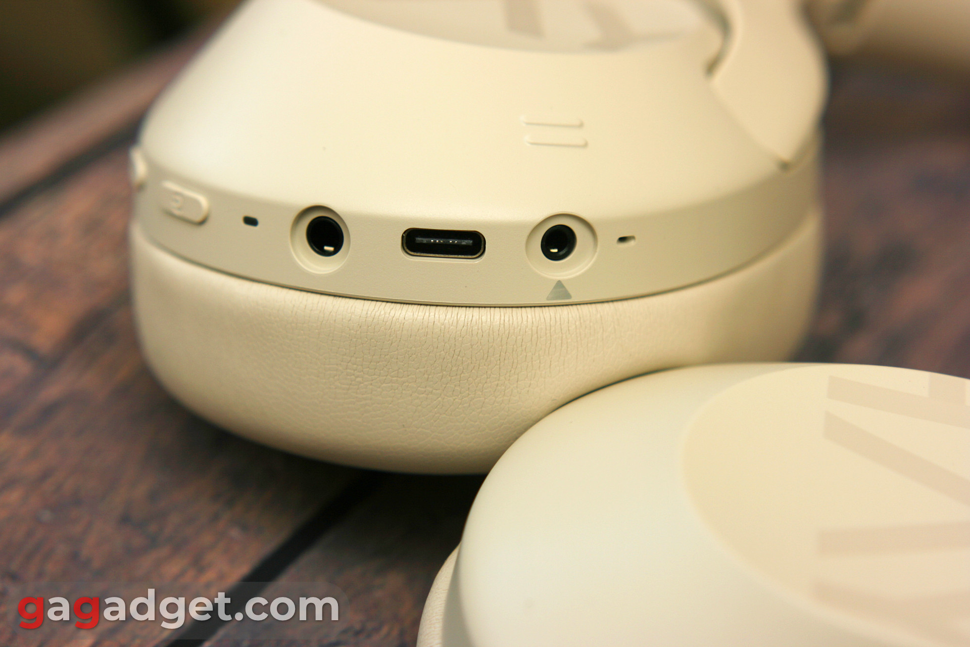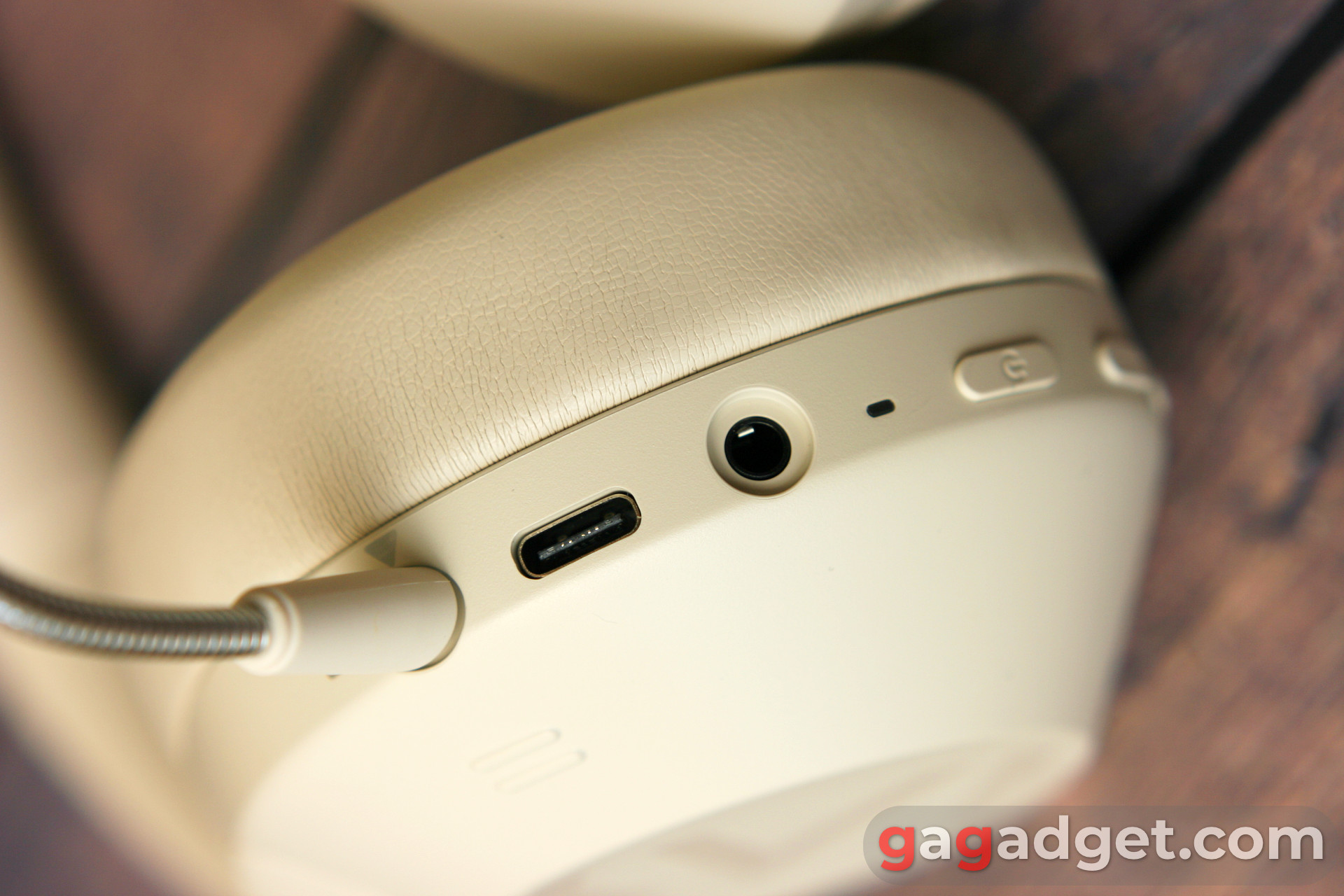 Aan de buitenkant van elke kom zit een gleuf voor de microfoon die wordt gebruikt door het noise cancelling systeem. Er zit verder niets op de linkerkom, maar de rechterkom heeft drie bedieningsknoppen, een USB-C poort, audiokabel- en microfoonaansluitingen, evenals een ingebouwde spreekmicrofoon en LED-indicator. Er zit nog een ruisonderdrukkende microfoon verborgen in de kopjes, maar ze zijn niet zichtbaar.